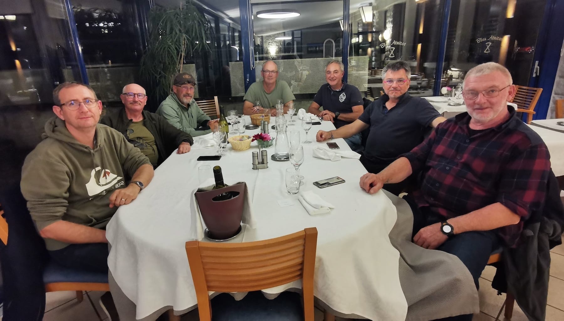 De gauche à droite : Heron33, Ms25210, Timtim38, Pierrot, Aubazine, Casa, Norman. Au restaurant “la sablier du temps”, une très bonne table à Argentat.