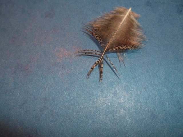 Maintenant, vous allez parer une plume de perdrix grise comme montré sur cette photo.