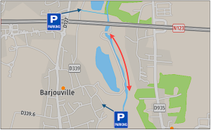 Vous pouvez vous garer et accéder en amont par le plan d’eau de Barjouville "la prairie"(rue des Patis à Barjouville) et en aval par le plan d’eau de Luisant (rue de la vallée de l’Eure à Luisant). Ces 2 parkings sont gratuits.