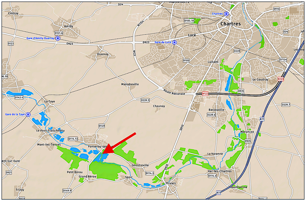 Ce parcours est situé à proximité de Chartres. Il est réservé à la pêche à la mouche fouettée.