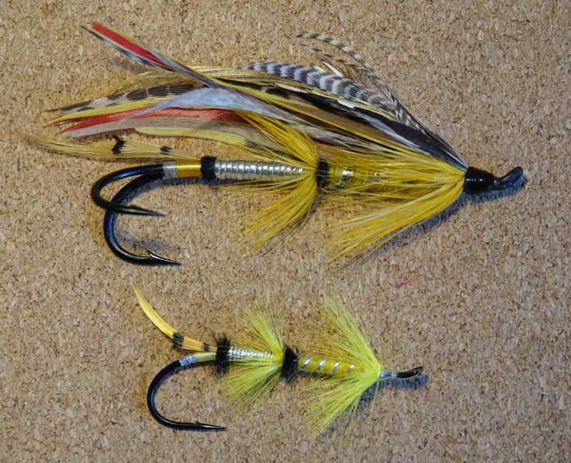 J’ai commencé, sur des tailles plus petites (vous en comprendrez la raison plus tard). Un simple essai, sur la mouche d’en haut de la photo. Les couleurs ne sont pas les bonnes, mais ainsi que je vous le disais, il sagissait d’un essai. La technique du montage de corps, c’est bon, je l’ai.