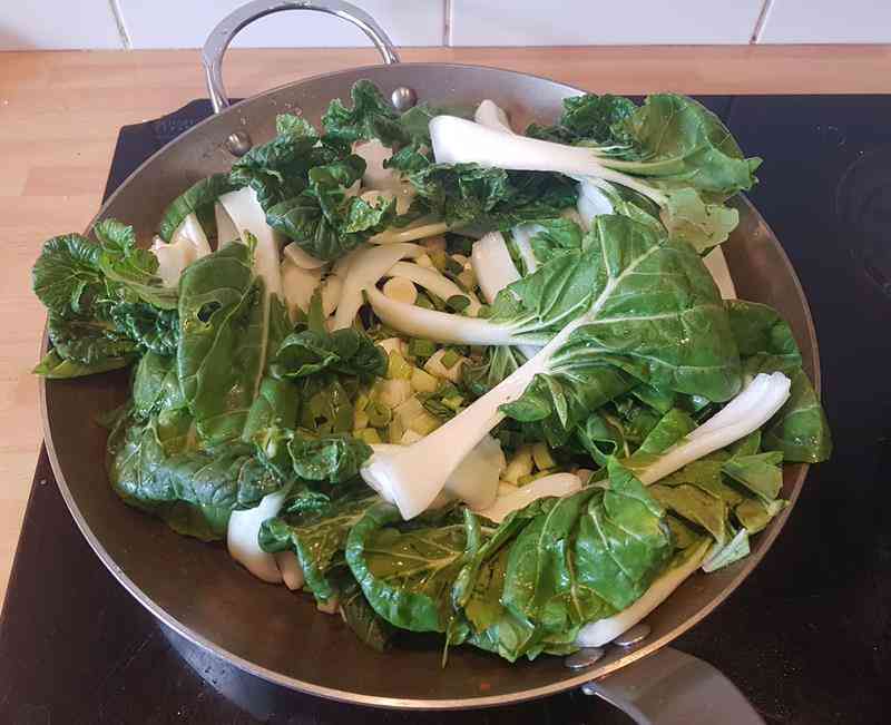 Des verts de blettes, blanchis, et immediatement rafraichis.
