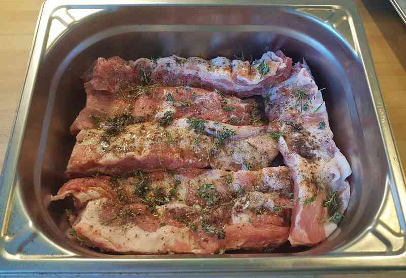Je badigeonne la poitrine avec ce mélange (non salé, mais poivre avec du poivre noir de Sarawak)