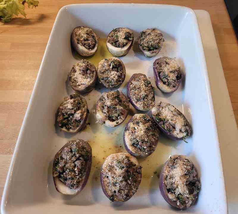 Dans un plat allant au four, je les dispose et les pulverise (vaporisateur) avec une huile d’olive fruitée mure.