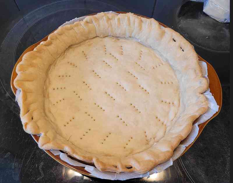 Deposée dans un plat a tarte, recouvert d’une feuille de papier cuisson