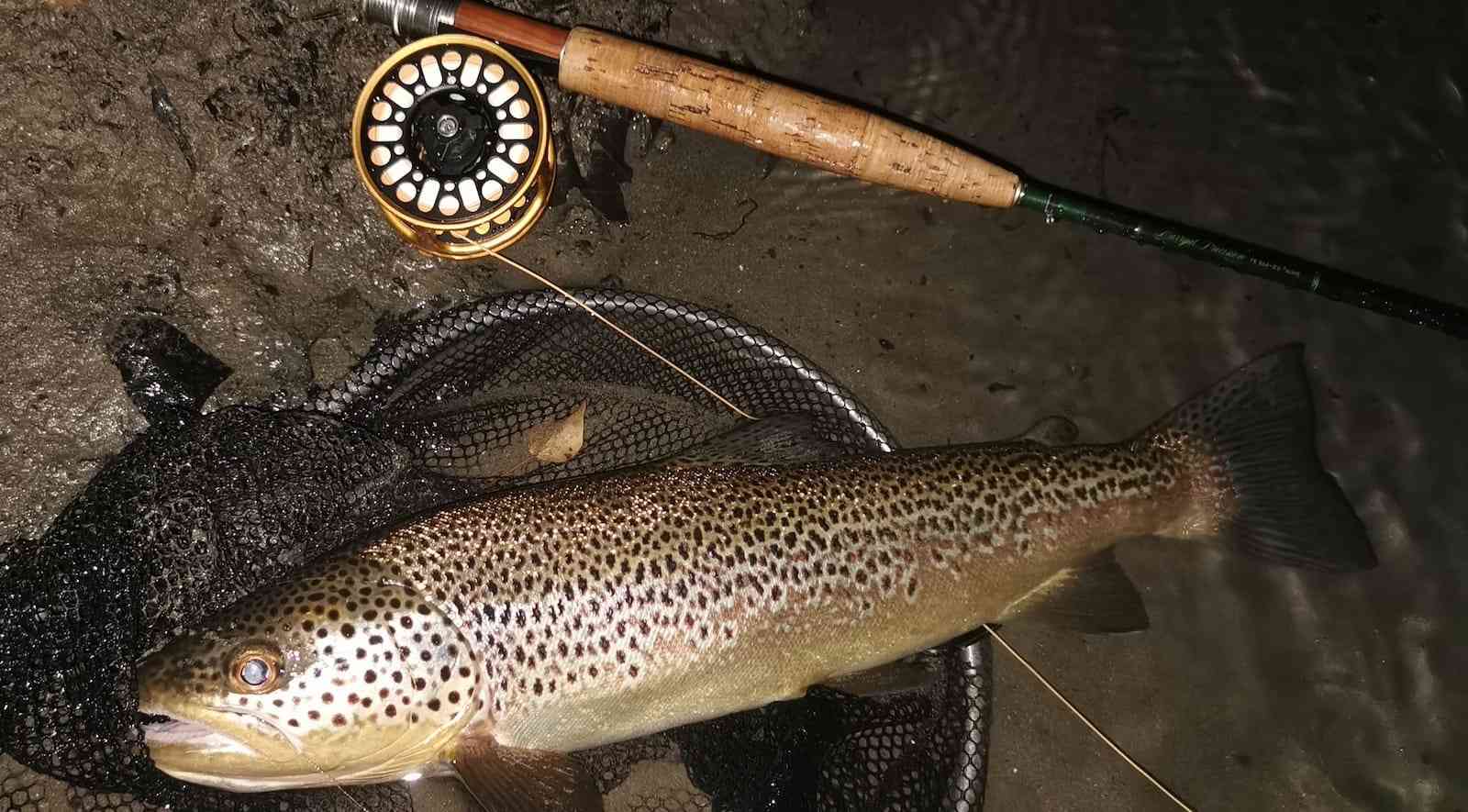 Et ce fut l’explosion, car pour ceux qui connaissent les truites du Gave, ce sont des poissons qui disposent d’une puissance exceptionnelle. Sans que je bouge le petit doigt, elle me pris une vingtaine de mètres de soie en quelques secondes, et se planta dans le courant central pendant 5 bonnes minutes. Il faut dire que j’avais eu la mauvaise idée de faire ce coup du soir avec une petite Marryat semi-parabolique de 8 pieds pour soie de 4. Je me suis insulté à plusieurs reprises car c’était un réel handicap pour un tel poisson.