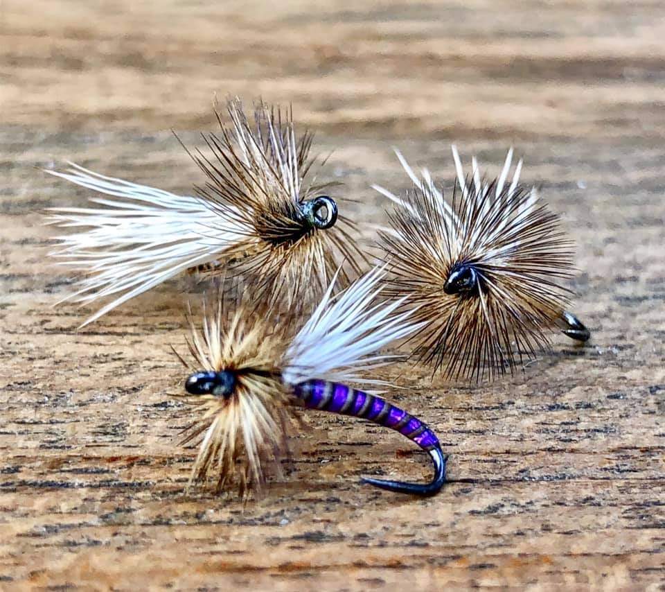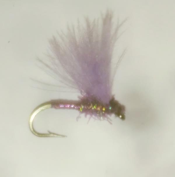 Cette couleur,violine, je suis lui doit ma premiere truite a la mouche, il ya des lunes et des lunes,je lui doit aussi mon plus beau ombre sur la dordogne, mais surtout je m’en sert lorsque les eccdyos sont au dessus des courants, une collerette mélange de roux et de violine, un corps rouge bordeaux cerclé de jaune, et de tres longs cerques, j’obtiens a mon sens une bonne imitation d’ecdyonurus venosus . a noter qu’en plus petit montage ,le violet ou le rose prononcé en mélange avec un hachle gris limousin ont obtiens une mouche lumineuse,toute en nuance et reflets c’est la hyalinité cher a P.Miramont. tout cela a été valider par les poissons, je ne m’en séparerai jamais. ah oui je monte une version CDC aussi. Norman
