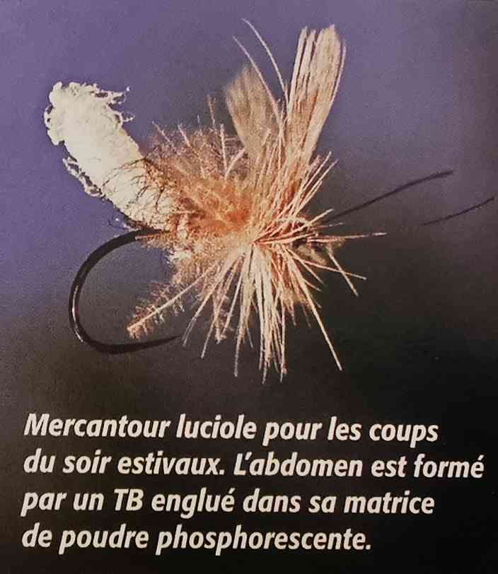 J’ai d’ailleurs retrouvé un article de JL Teyssié dans un ancien pêche mouche où il montre un modèle similaire (Mercantour Luciole), avec un tube bodiz, mais …. phosphorescent !