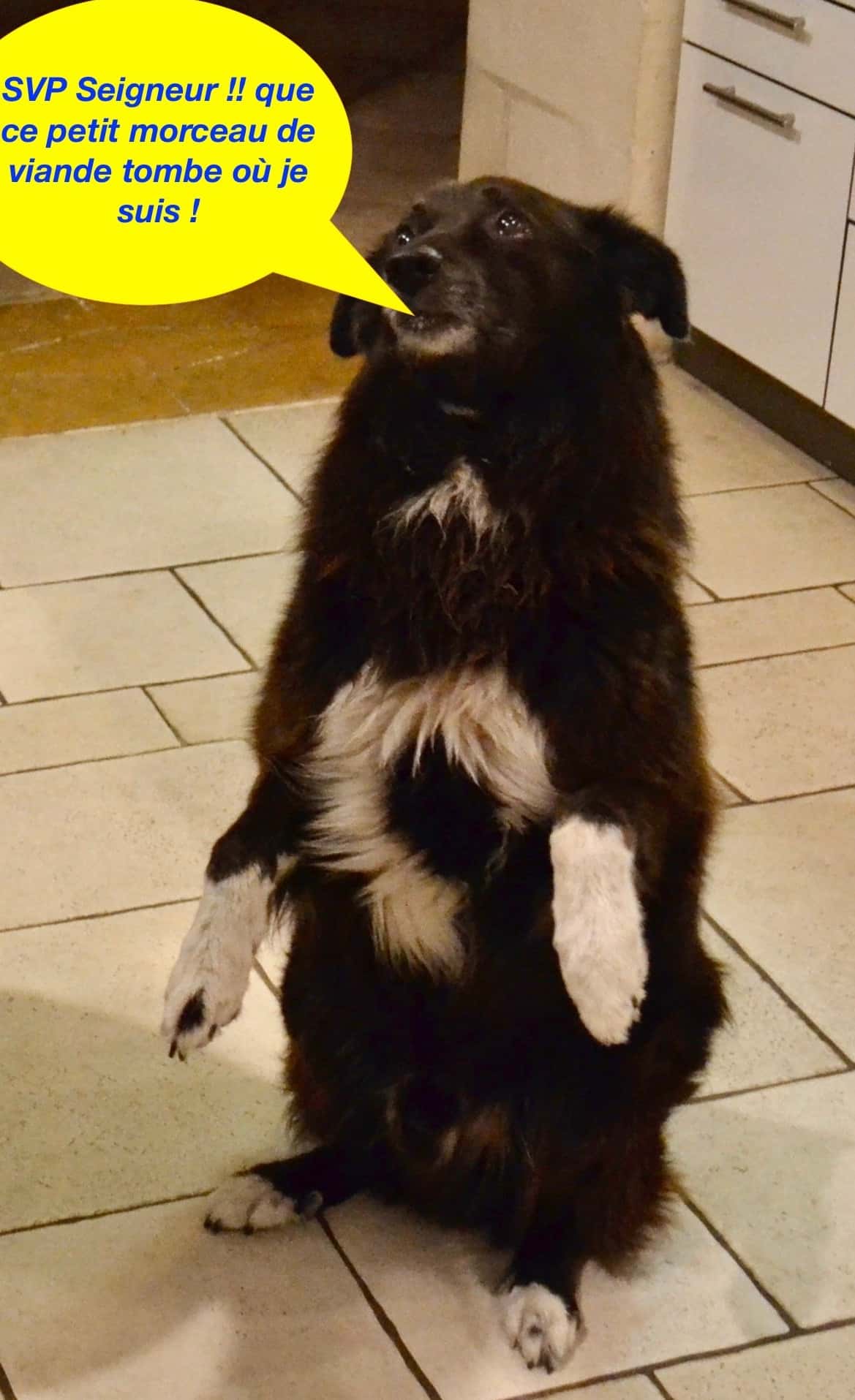 On m’avait affirmé que les Borders étaient très attachés à leur maitre, et superactifs, effectivement, je confirme ces caractéristiques, très prononcées chez ce chien. Les chiens, en général, peuvent retenir jusqu’à 40 mots, (ce peut aller jusqu’à 80), les borders, reconnus comme les chiens les plus intelligents (suivis par les caniches, souvent chiens de cirques) peuvent retenir 200 mots, et atteindre 300 pour les meilleurs, (avec 300 mots, on peut voyager et se faire comprendre dans de nombreux pays) ils peuvent également reconnaitre un objet sur une photo, et aller récupérer l’objet réel dans un stock de plus de 50 objets mélangés… sans parler des concours de chiens dressés où ils excellent… Quand elle m’observe, j’ai parfois l’impression que ma chienne m’évalue à la dérobée, pour voir si je vaux le coup qu’elle m’initie aux mathématiques quantiques…