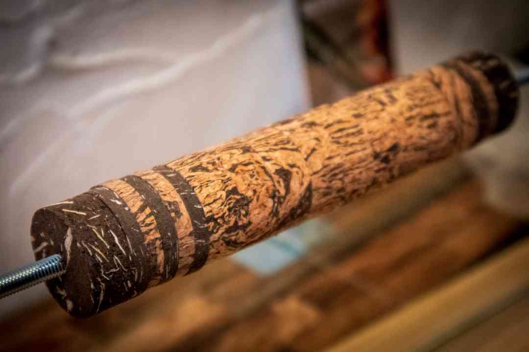 Après avoir ajusté l’intérieur de la poignée pour l’adapter au porte moulinet, il ne restait qu’à coller le tout. Cela prenait vraiment forme et commençait à vraiment ressembler à une canne à mouche, et au final, la première que j’avais l’occasion de tenir en main :)