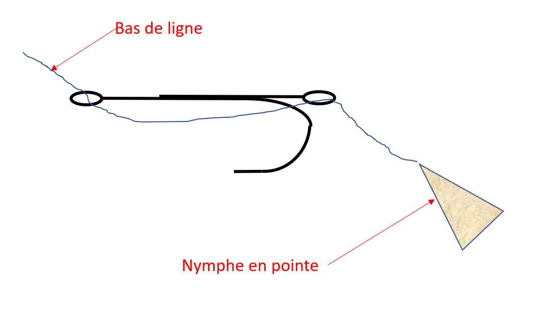 L’autre option serait de fixer la pointe avec la nymphe directement a la courbure de l’hameçon de la sèche, a priori c’est une technique assez utilisée, et qui apporte de bon résultats.