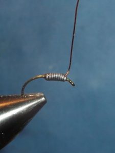 Après avoir positionné l'hameçon dans les mors de votre étau, enroulez le fil de plomb sur la hampe, en emprisonnant le fil de cuivre.