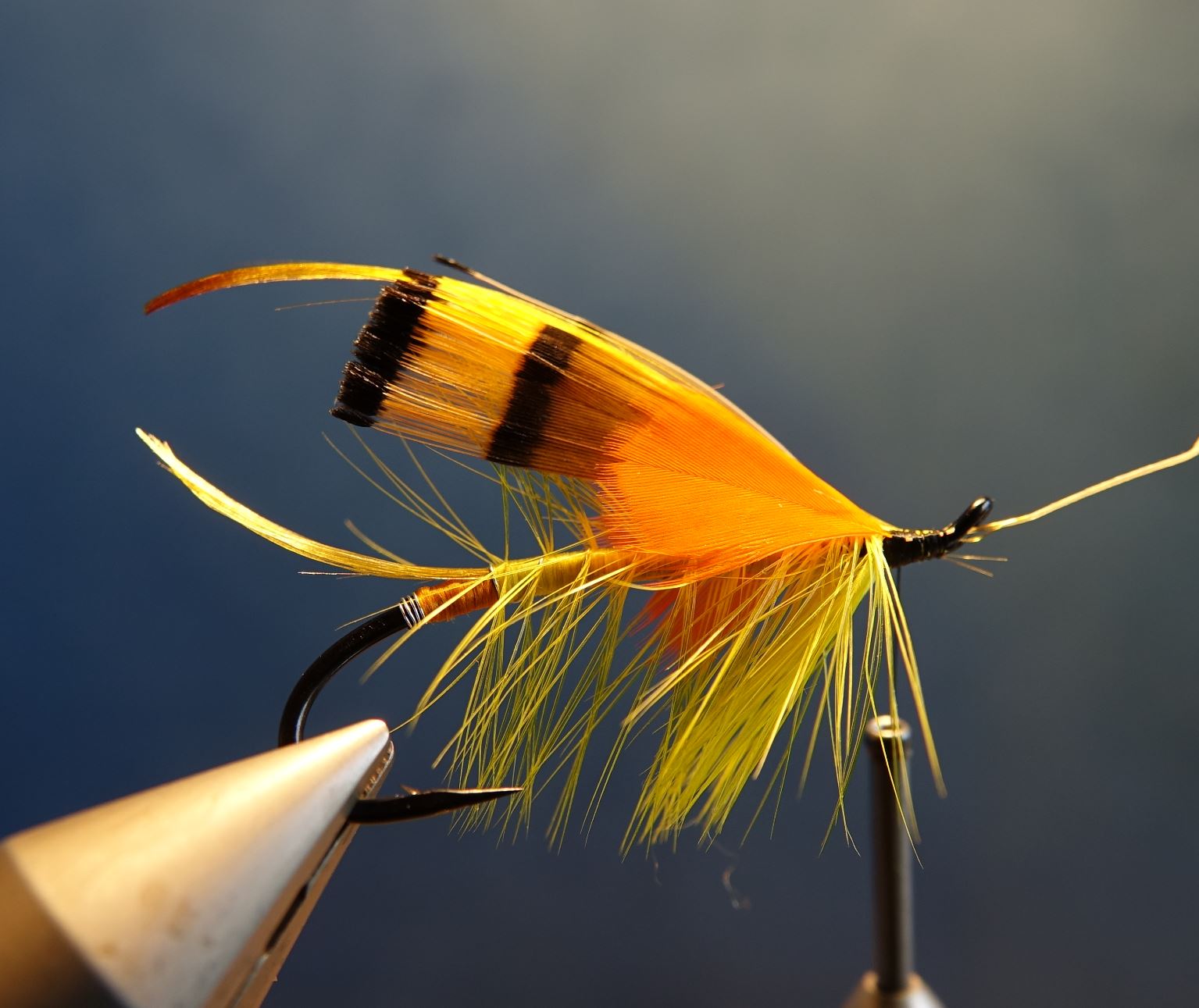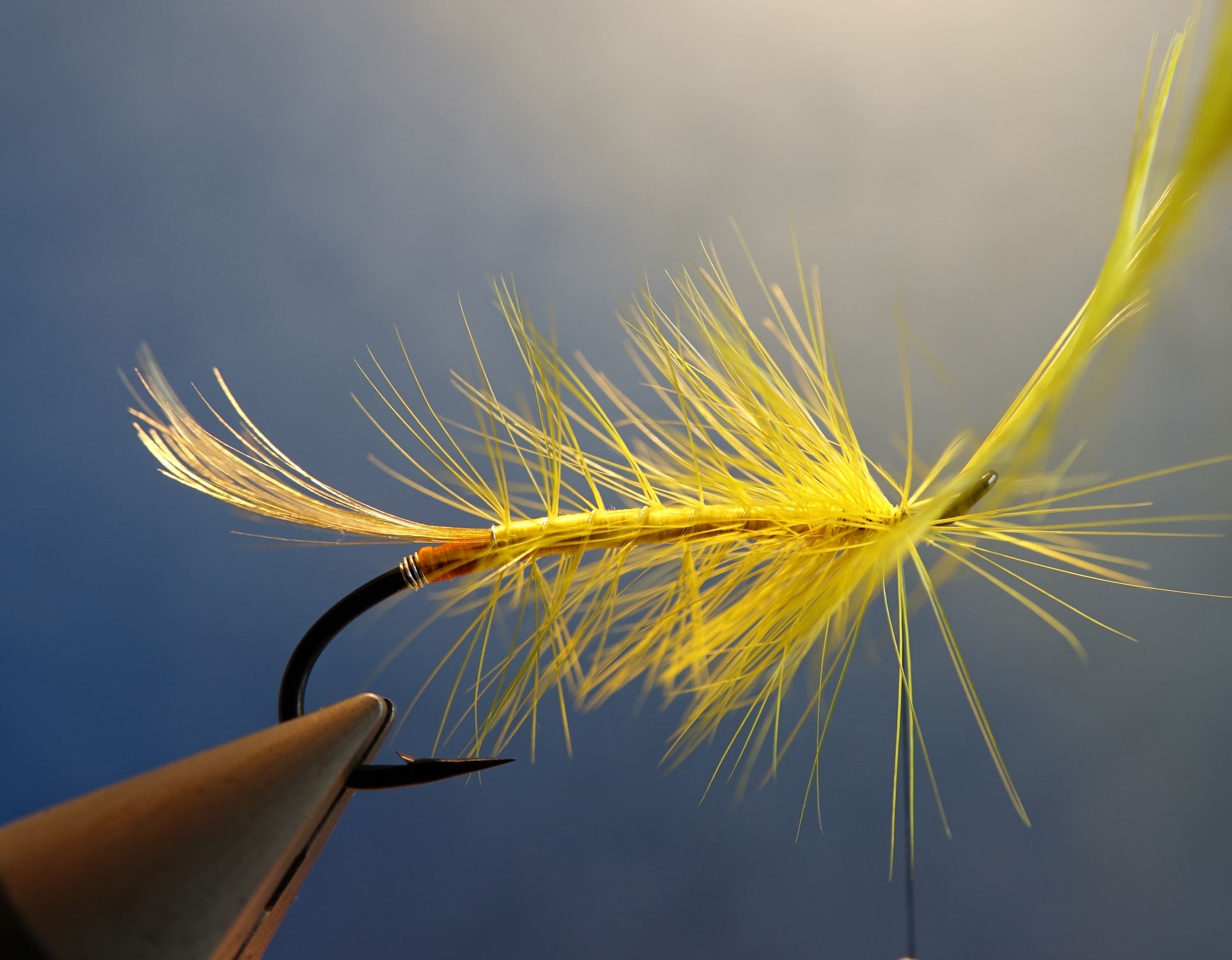 - Gorge: le hackle jaune utilisé comme hackle de corps