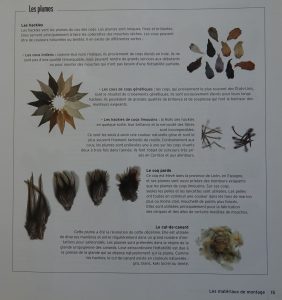 Il y parle ben sur des cous de coq et autres hackles et pelles (reportez-vous à cet article si vous souhaitez plus de détail). Mais il parle également des autres types de plumes, CDC, tippets de faisan doré,  plumes de perdrix, pintades, etc.