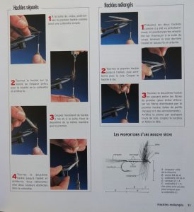 Ensuite vient un chapitre sur les leçons de montage.  Une à deux leçons (étape par étape, en photo) par page. Au total 16 gestes de base en flytying y sont décrits.