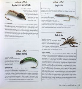 Ensuite, et là on rentre vraiment dans le vif du sujet, à savoir le flytying.  Viennent en effet  les fiches de montages des mouches artificielles, organisées de la manière suivante: