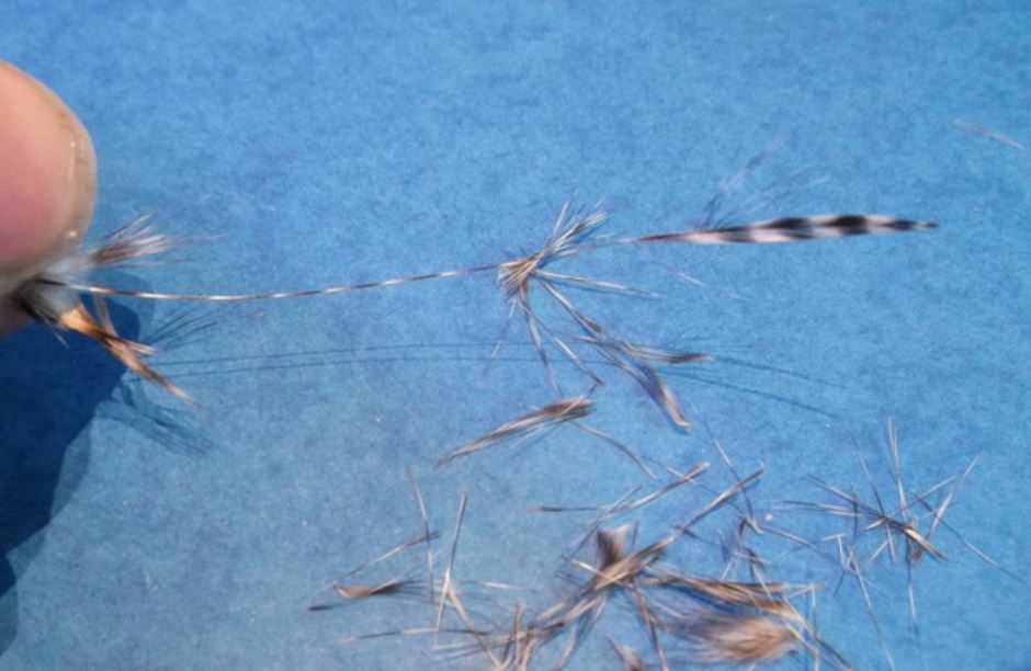 Ebarber un hackle de coq.