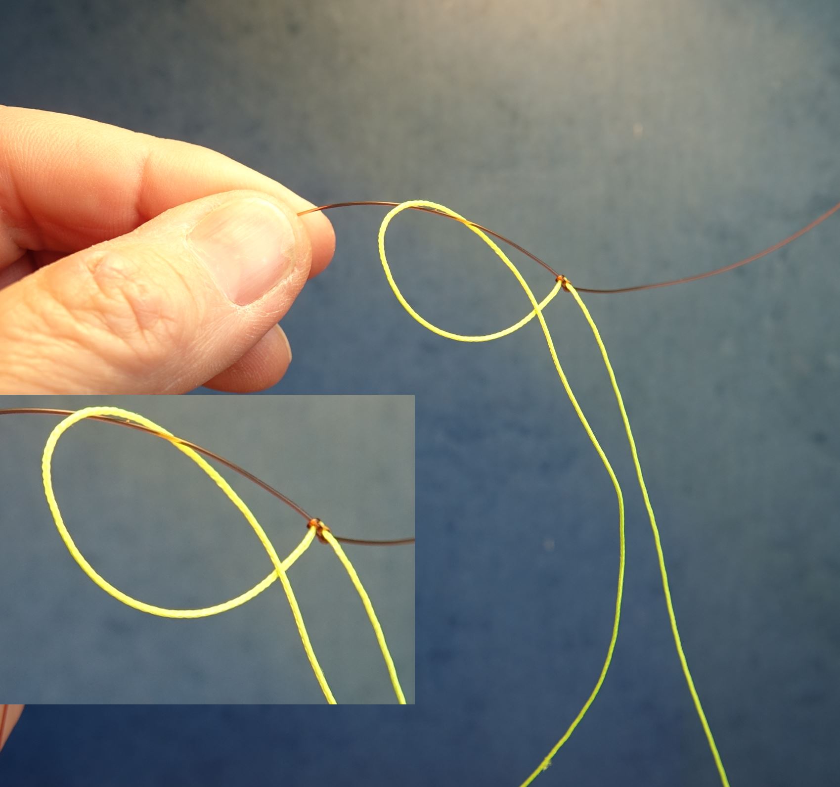 Faire la première demi-clef avec la tresse sur le brin de fluorocarbone