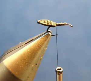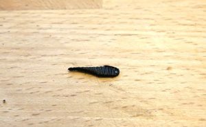 Il ne vous reste plus qu'a couper votre bandelette comme indiqué par les flèches ci-dessous: Cela vous évitera d'avoir trop de matériau sur la hampe de l'hameçon.