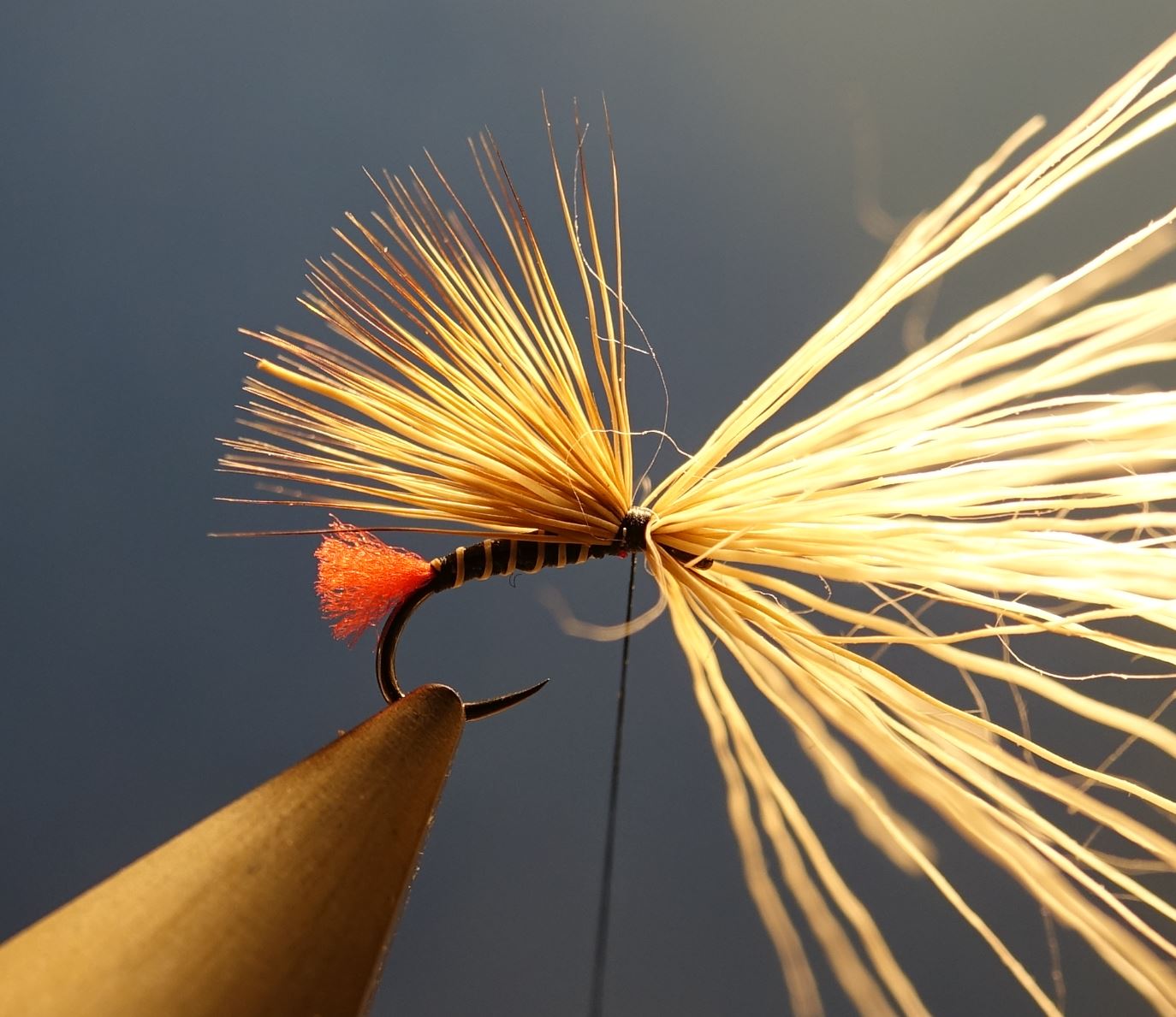 - Aile : poils de cervidés, couleur adaptée à la teinte générale de la mouche (clair sur le modèle présenté)