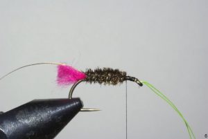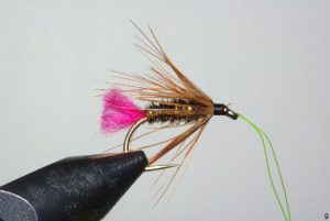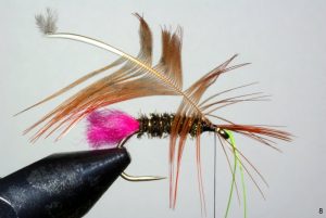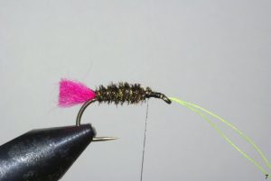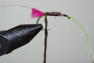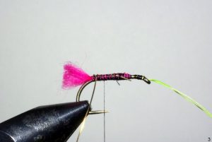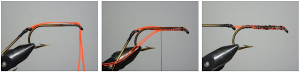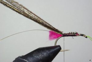 Poser et ligaturer la laine rouge pour le tag et le tinsel en queue.